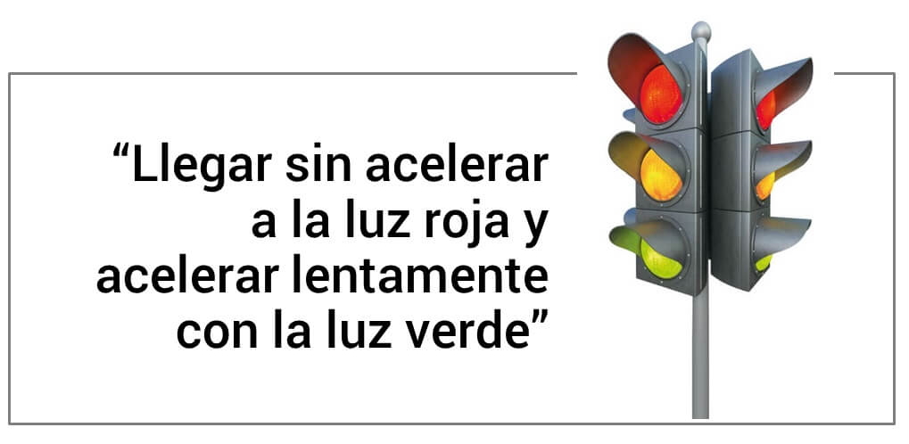 Ejemplo: Si ves un semáforo en rojo o una señal PARE, puedes soltar anticipadamente el acelerador e ir reduciendo paulatinamente tu velocidad.